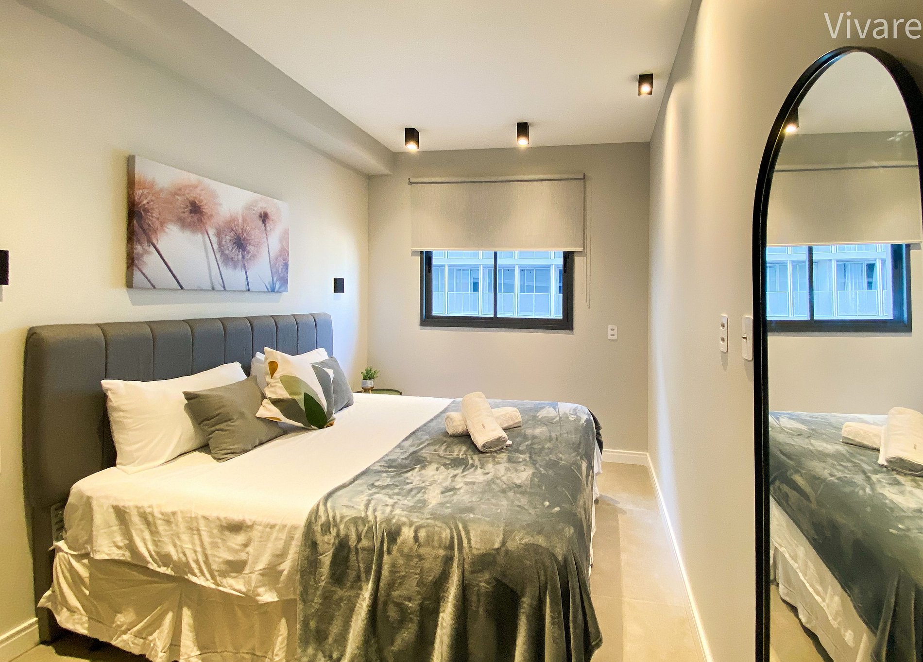 The bedroom is a true retreat of tranquility, with a comfortable bed, elegant bedding, and a serene decor that invites rest. The spaces are peaceful, with high-end finishes.