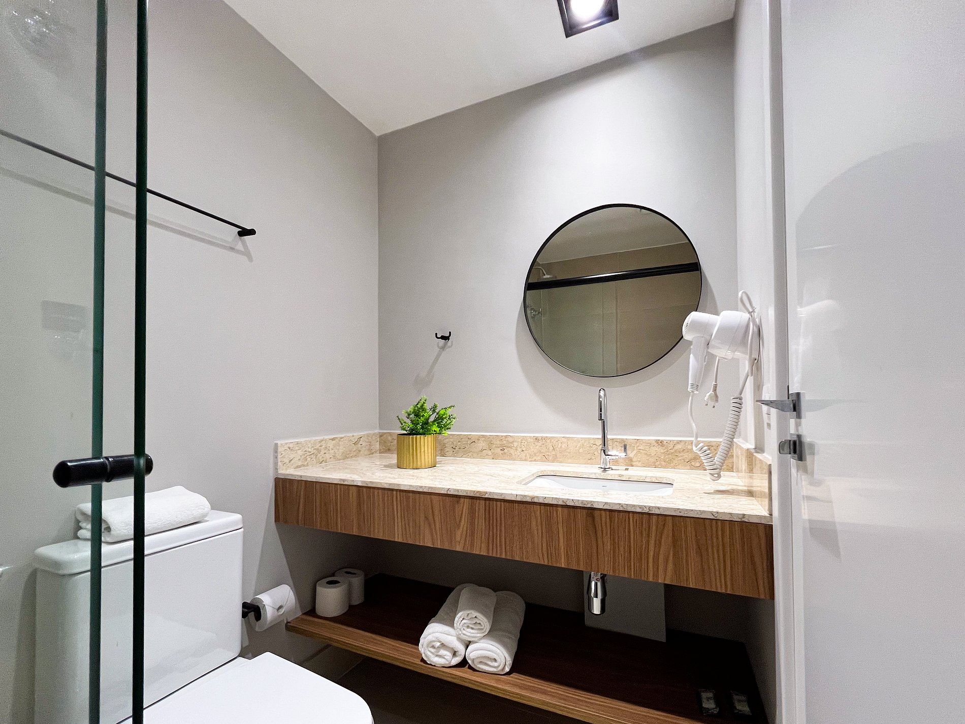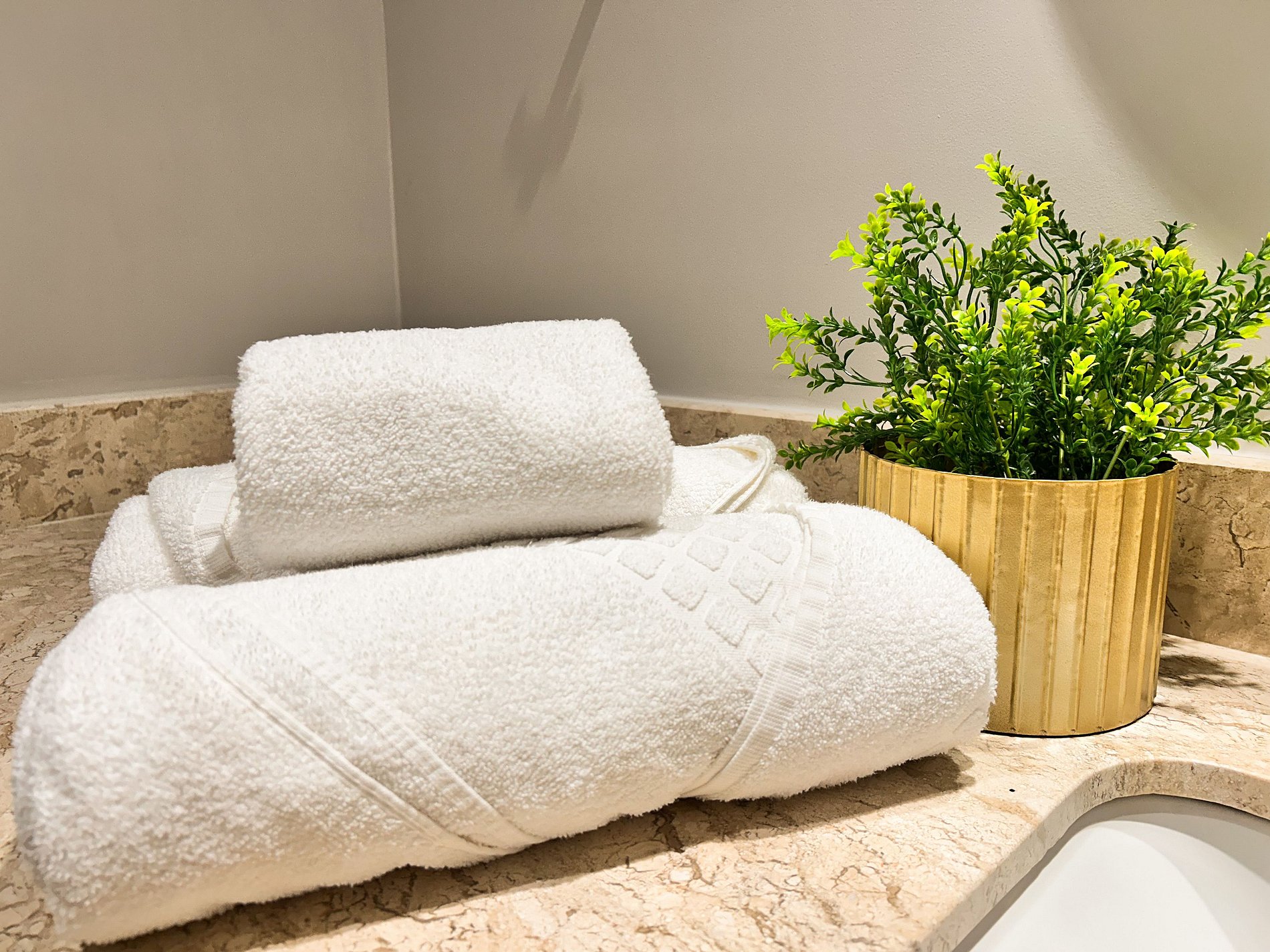 Bathroom with hot water and soft bath towels.