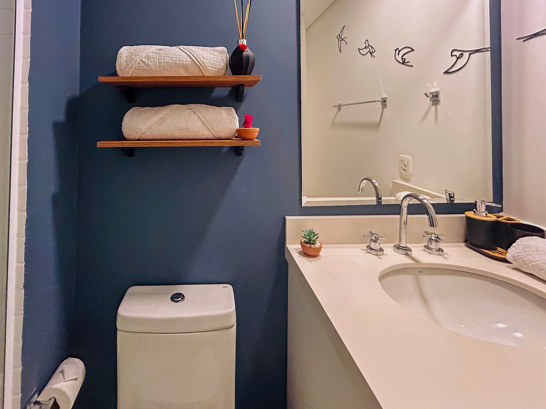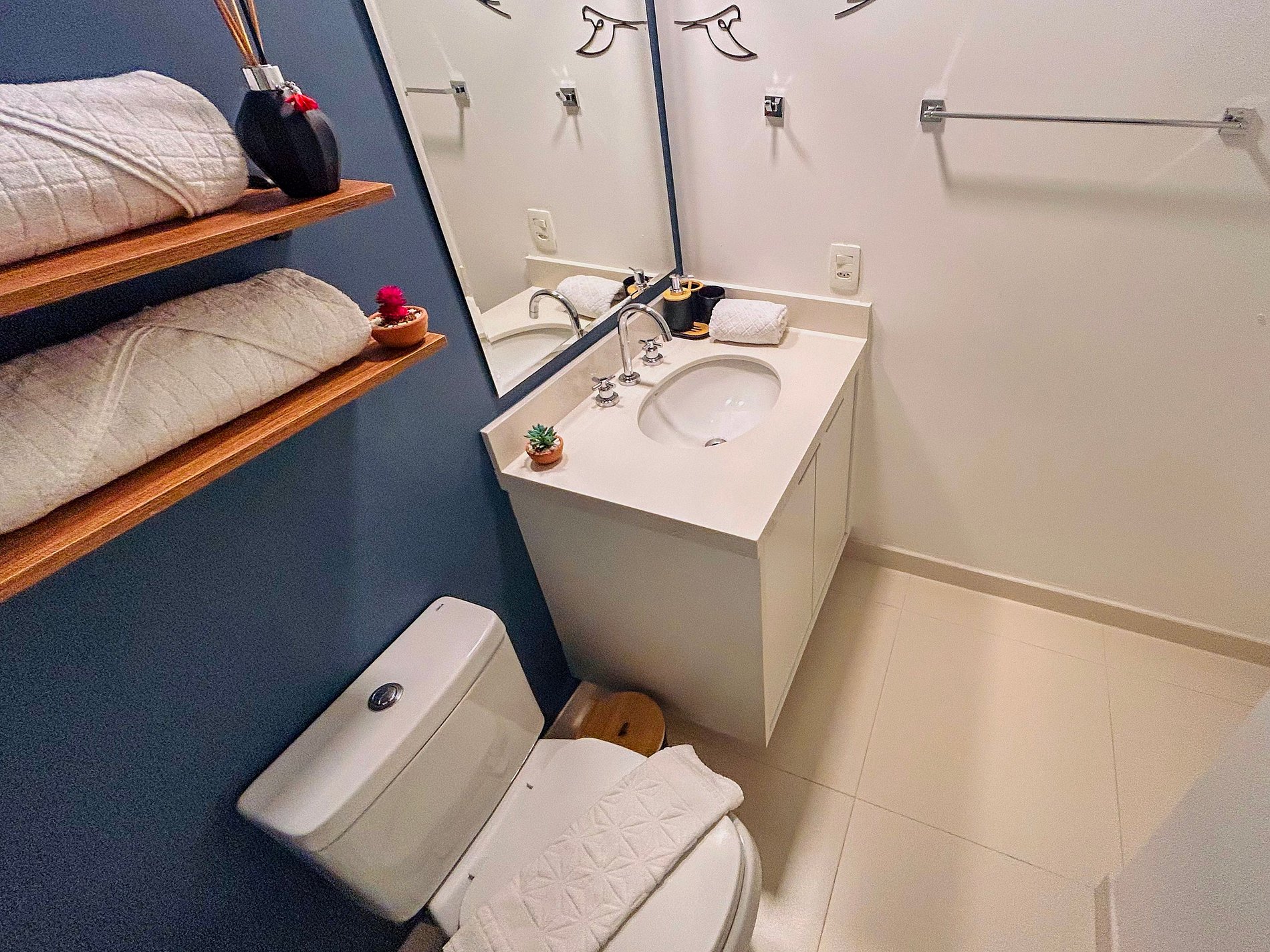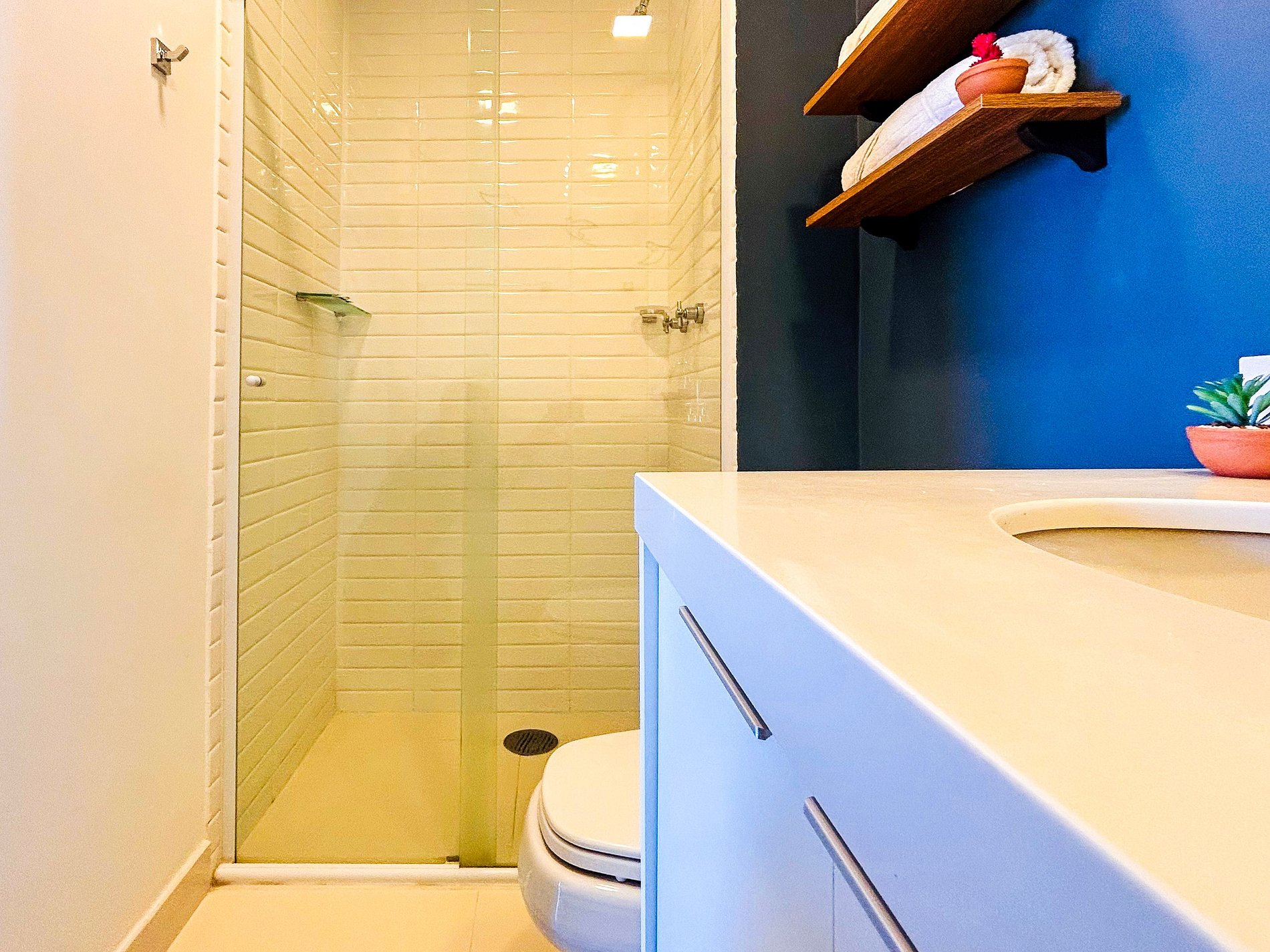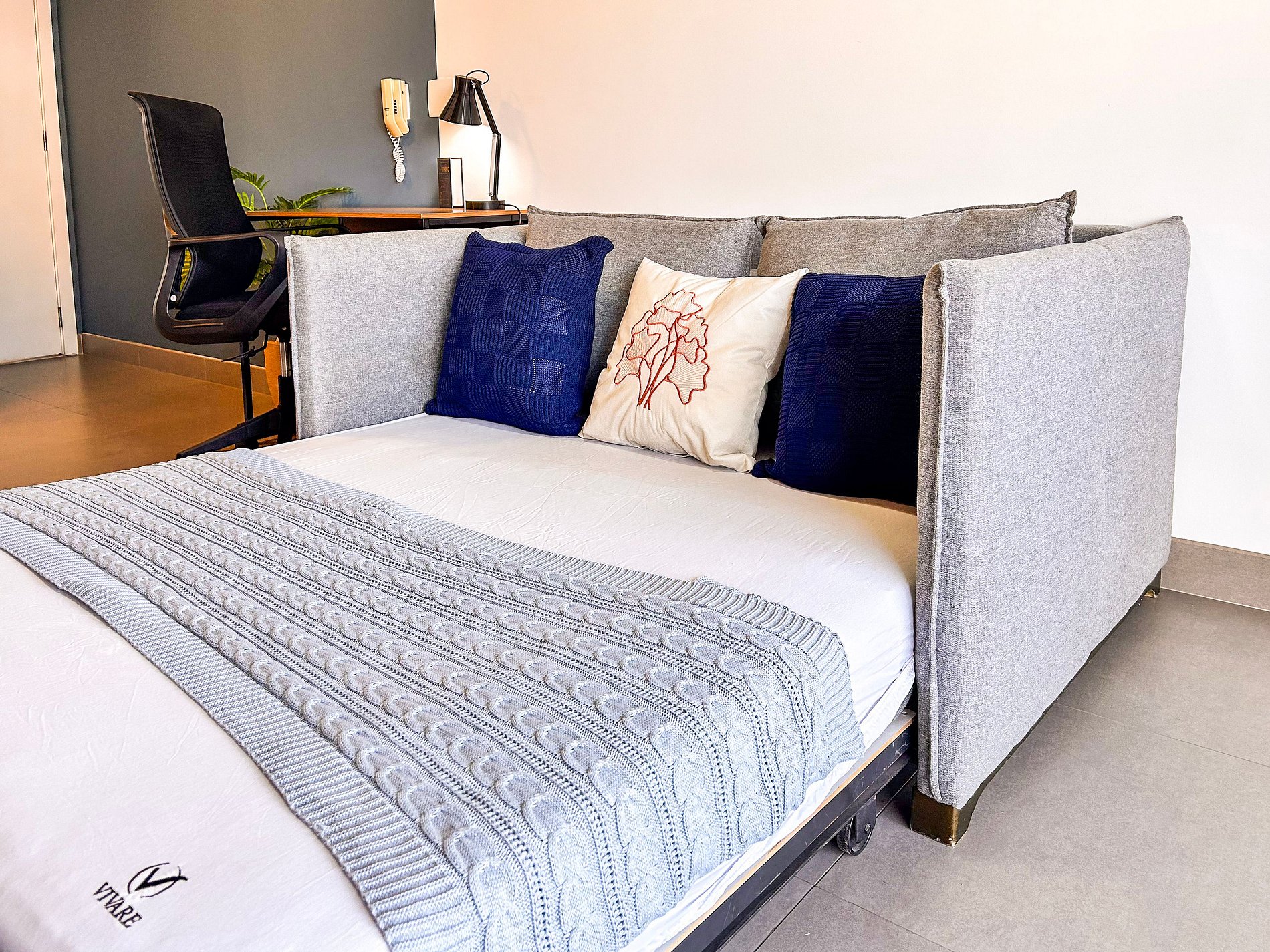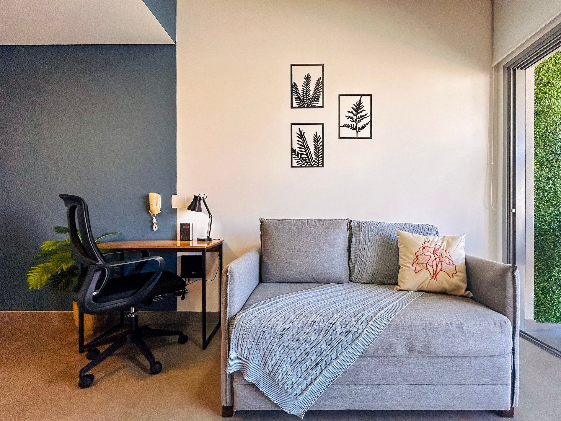 Everything has been thoughtfully designed to provide you with one of the best stays of your life. The studio features a queen-size bed, wardrobe with hangers, split air conditioning, and blackout curtains. Enjoy a cozy space with a 43-inch Smart TV, 300Mbps Wi-Fi, and a double sofa bed. The kitchen is equipped with a duplex refrigerator, stove, microwave, coffee maker, blender, sandwich maker, dishes, and cookware. The bathroom offers hot water and soft bath towels.
