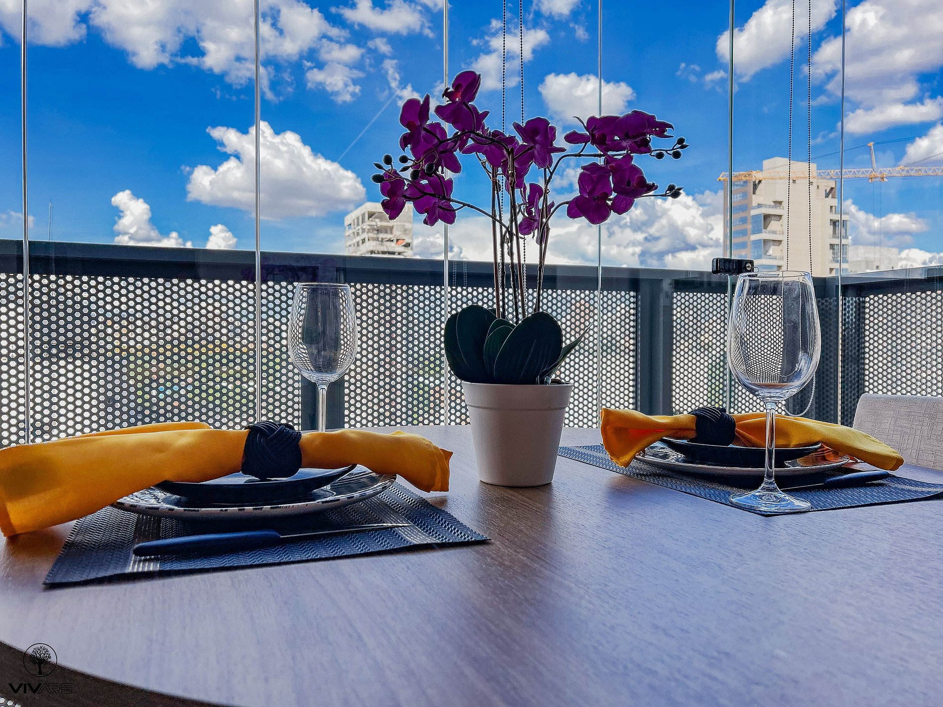 Apartamento com Cama casal e sofá-cama casal , Armário com cabideiro, Ar condicionado split e sacada. Ambiente confortável com Smart TV de 40’, Wi-fi de 300Mbps; Cozinha com Geladeira duplex, Fogão, Micro-ondas, Cafeteira, Liquidificador, Sanduicheira, Louça, Panelas e Purificador de água; Banheiro com Água aquecida e Toalhas de banho macias.
