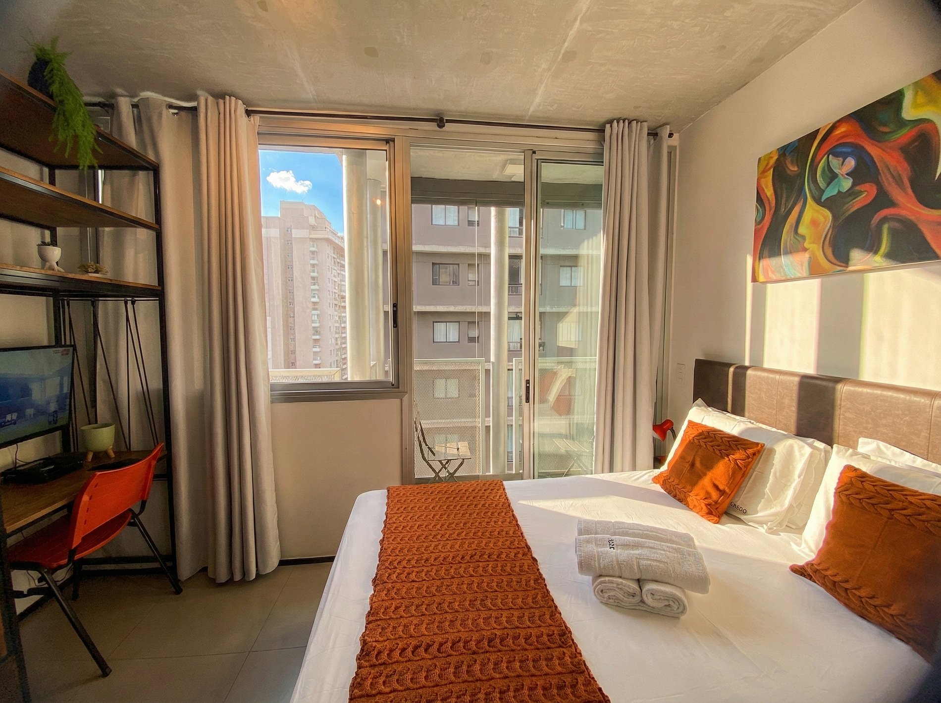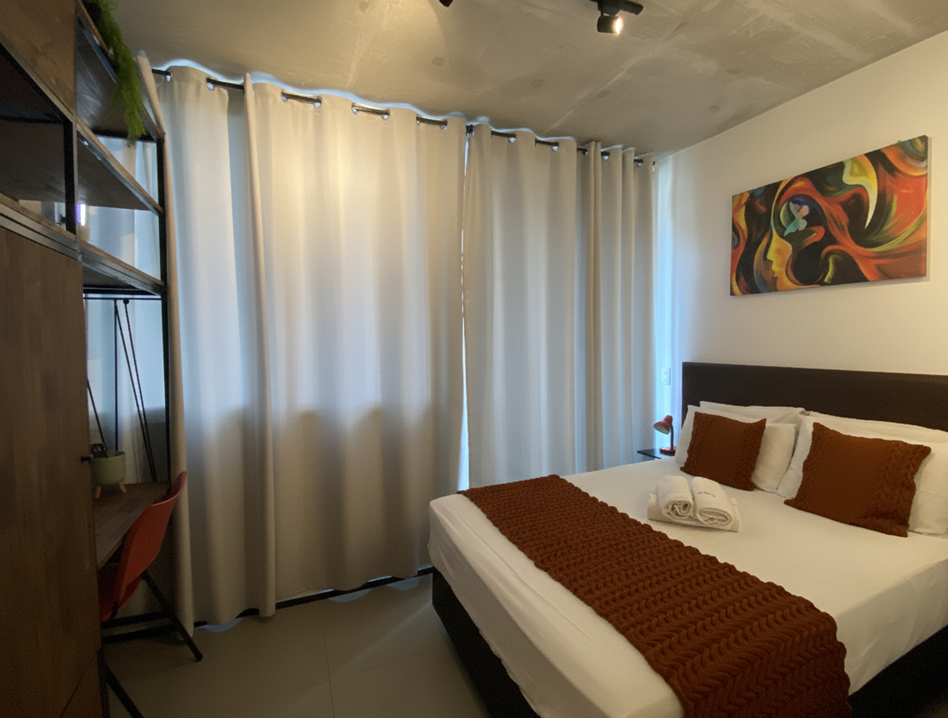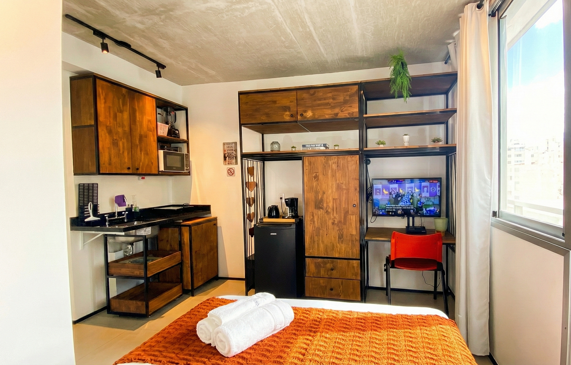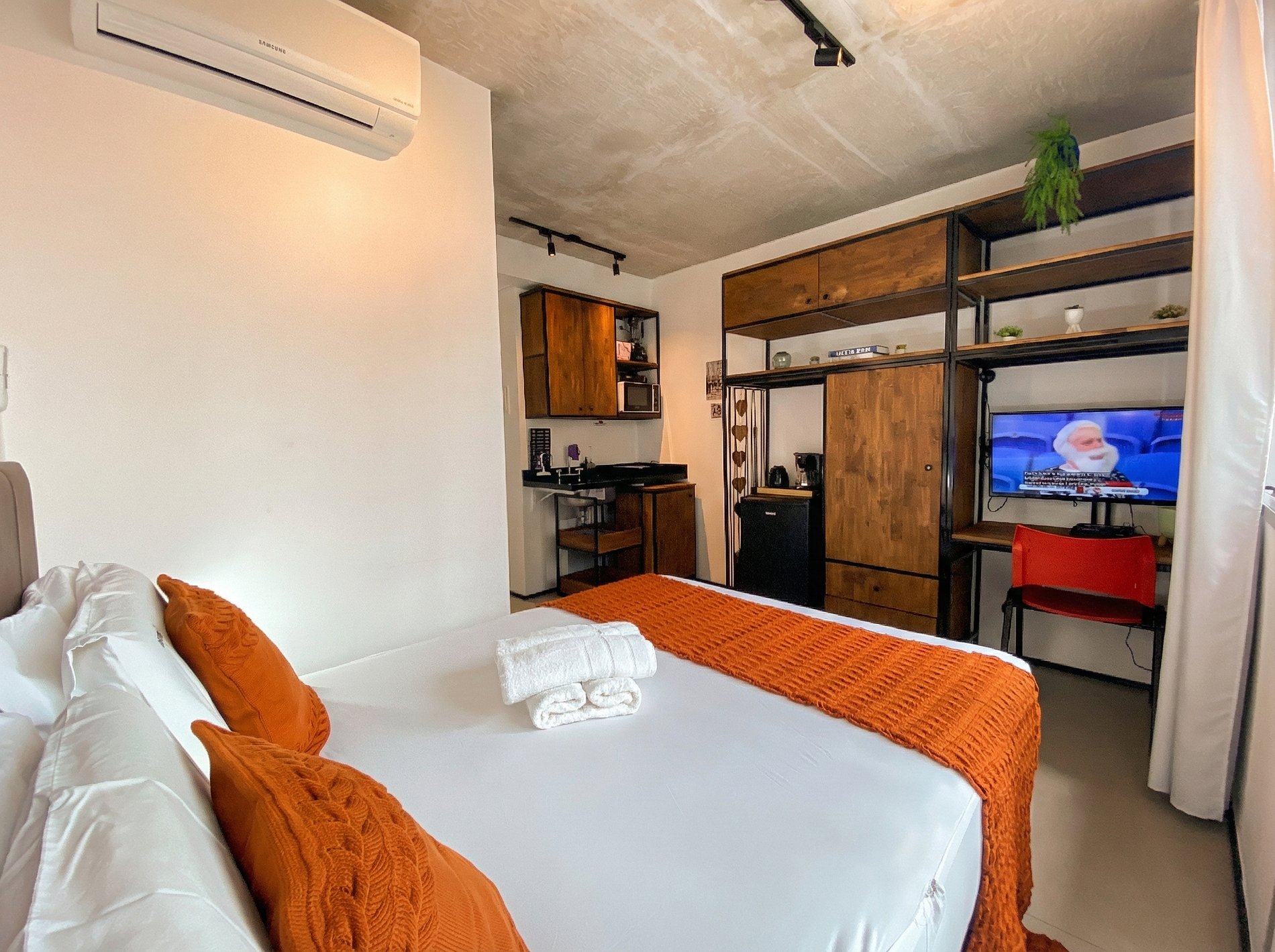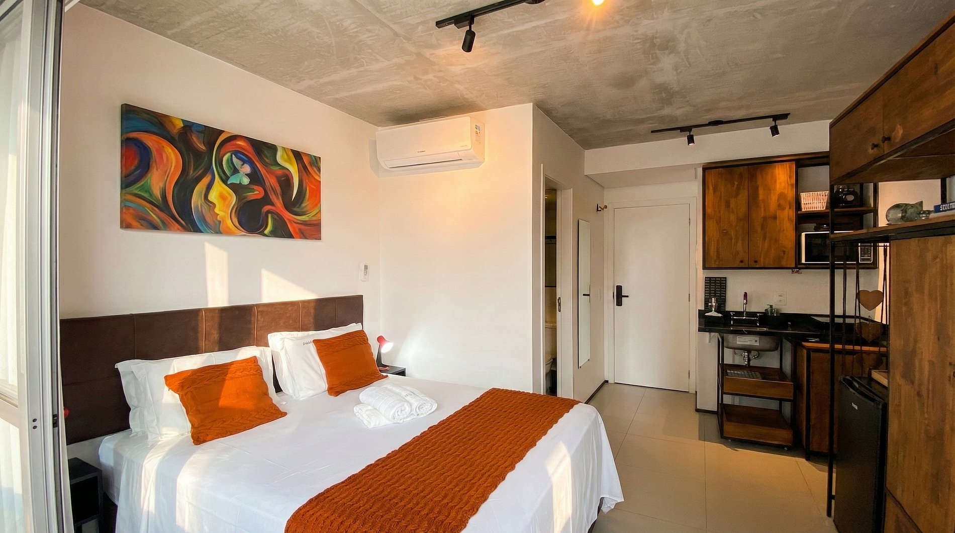 Nosso estúdio foi cuidadosamente projetado para proporcionar uma estadia acolhedora e funcional. Com uma decoração contemporânea e toques de design, o ambiente conta com: