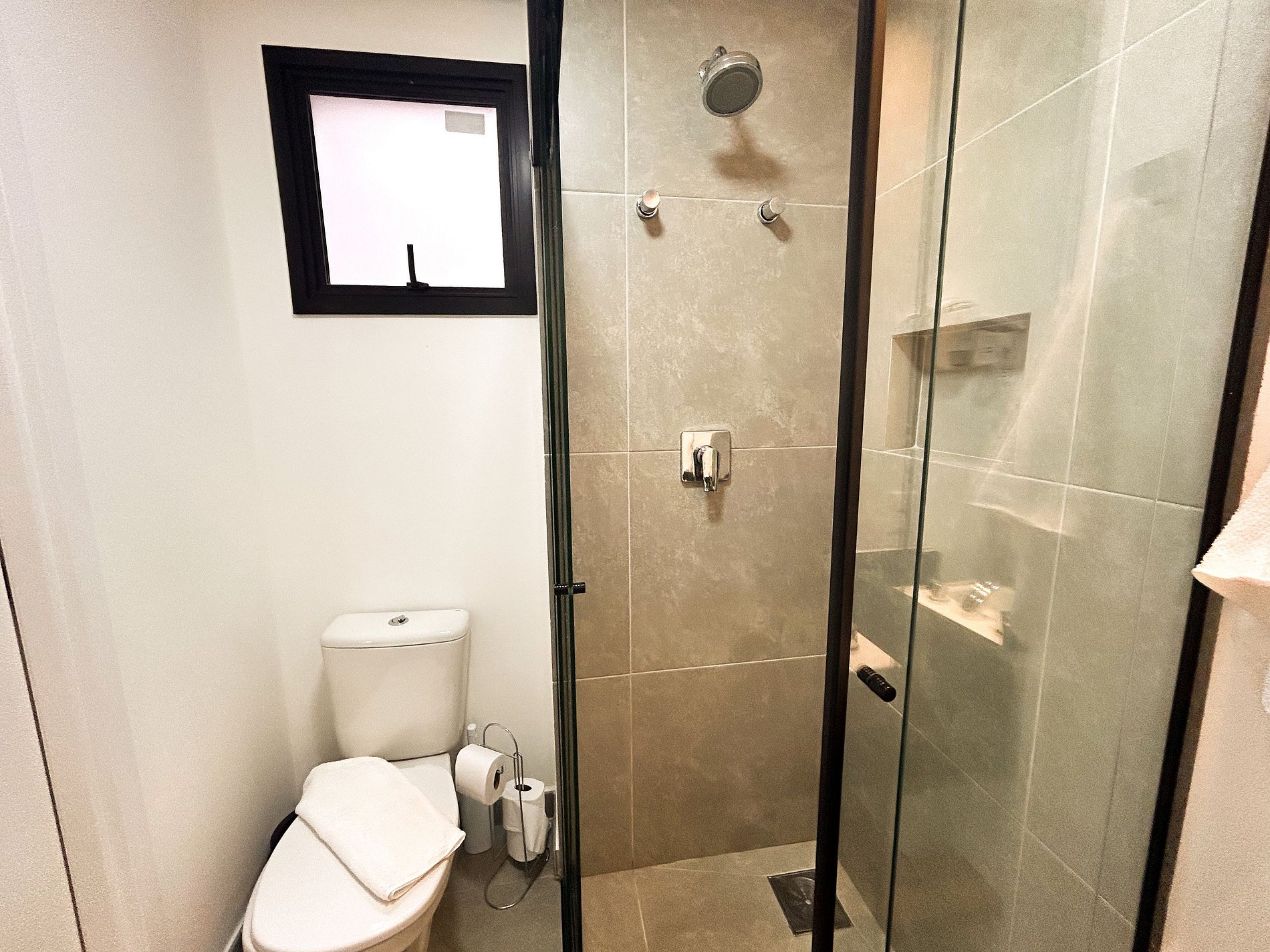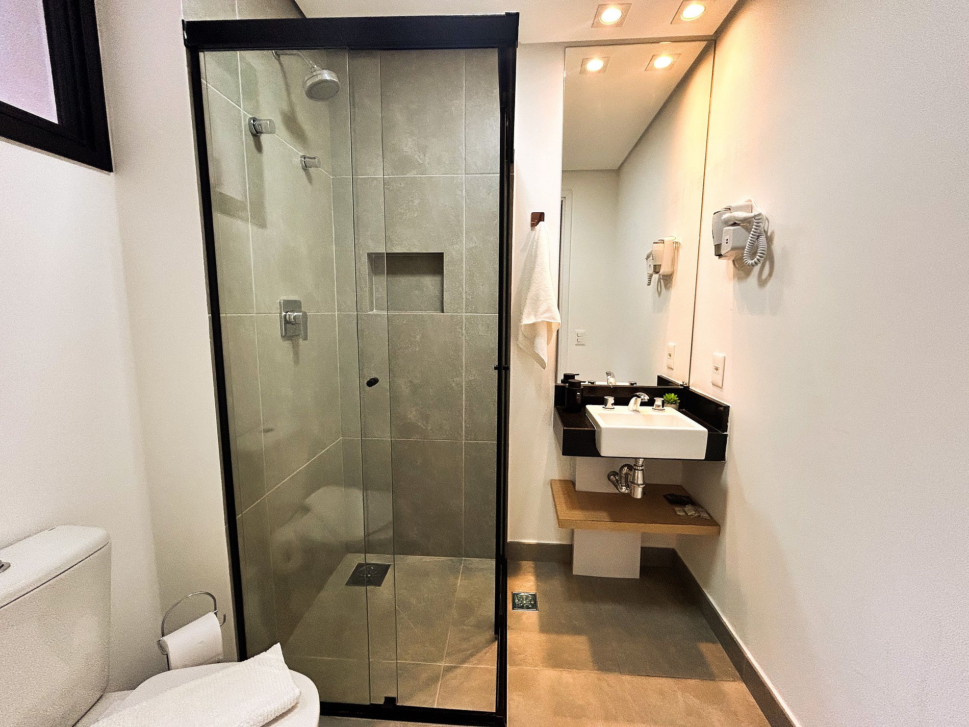 Banheiro com Água aquecida e Toalhas de banho macias.