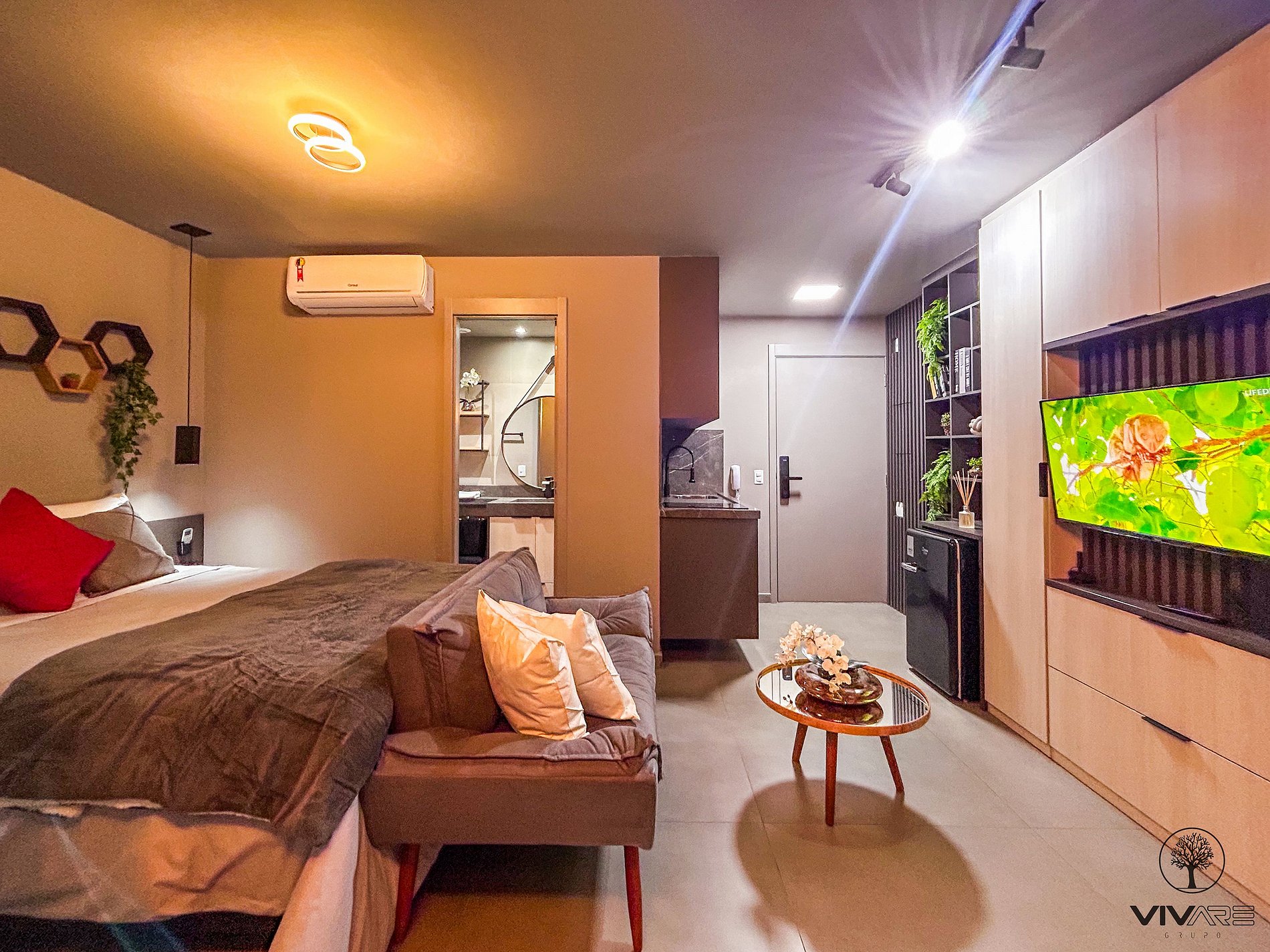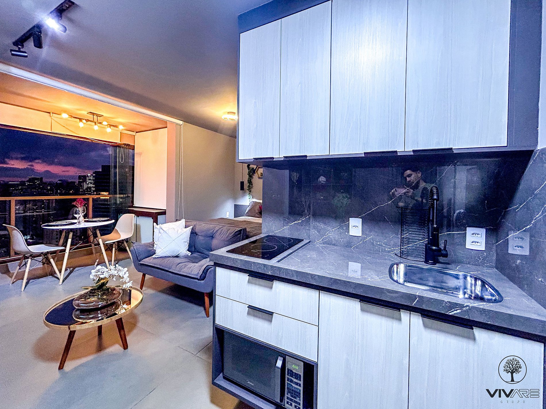 Meu espaço é um estúdio de 27m², localizado no 21º andar, contém cozinha completa e cama Casal.