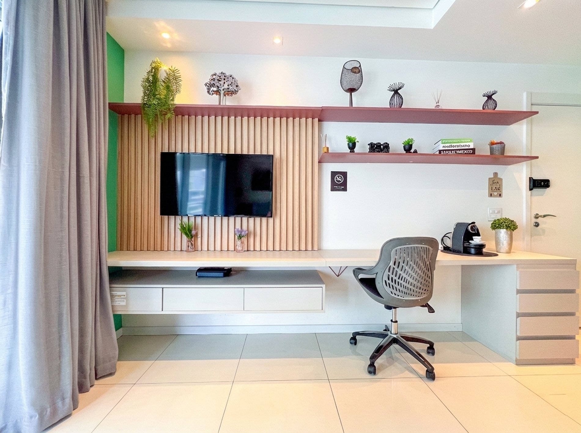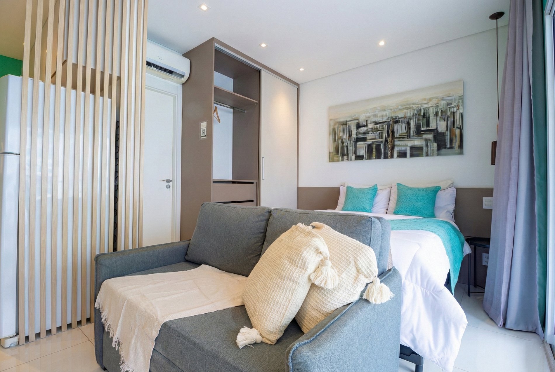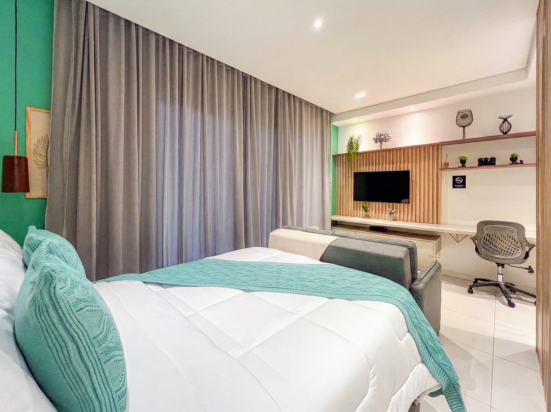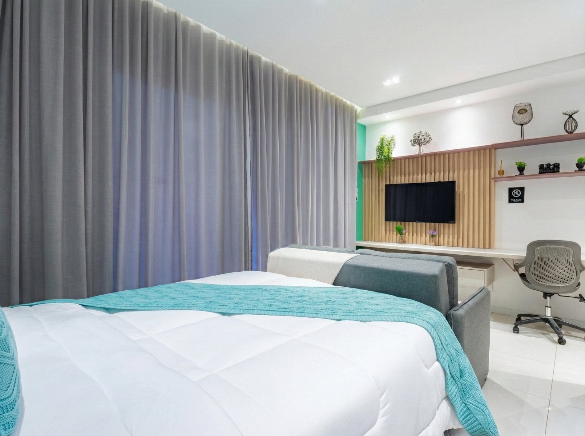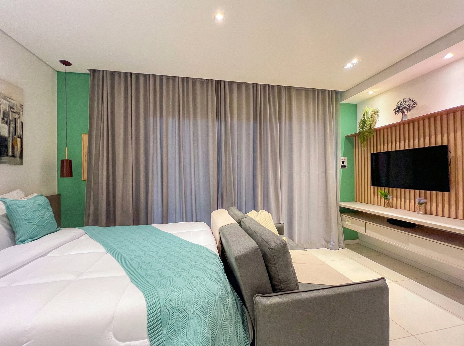 Nosso estúdio foi cuidadosamente projetado para proporcionar uma estadia acolhedora e funcional. Com uma decoração contemporânea e toques de design, o ambiente conta com: